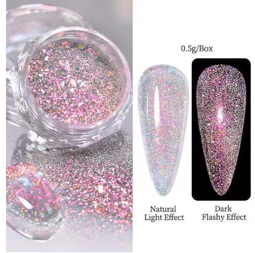 Az Aurora Reflective Glitter egy csillogó, reflective extrémen csillogó hatású körömdíszítő, amely minden körmöt feldob és egyedi ragyogást kölcsönöz a kezeidnek. A finom ragyogó részecskéknek köszönhetően a reflektáló glitter fényvisszaverő hatása maximális, így bárhol is jársz, a figyelem középpontjában leszel. Légy különleges és ragyogj ki a tömegből! Használhatod önmagában, zseléhez keverve, ombre glitter díszítések elkészítéséhez is.