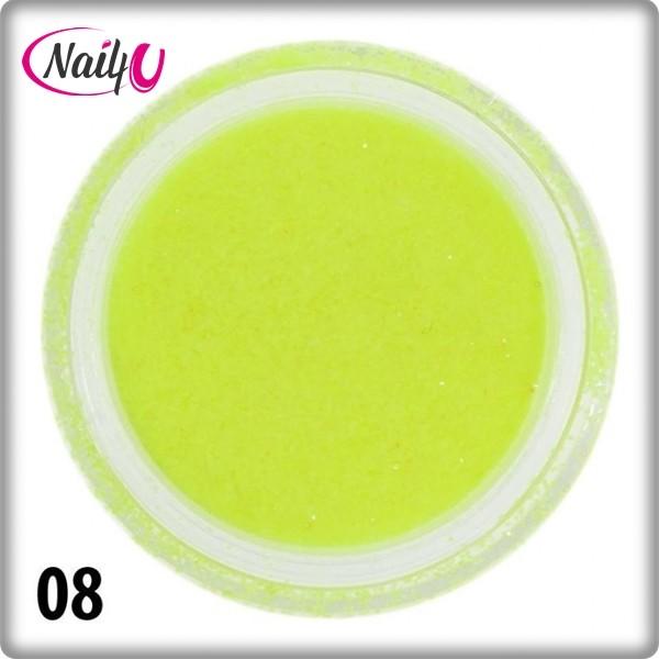 Csillámpor 08. , neon sárga színben. A körömdíszek között a leginkább népszerű körömdíszítő anyag. Töretlen népszerűsége a kedvező ár mellett, a széleskörű felhasználhatóságnak is köszönhető.