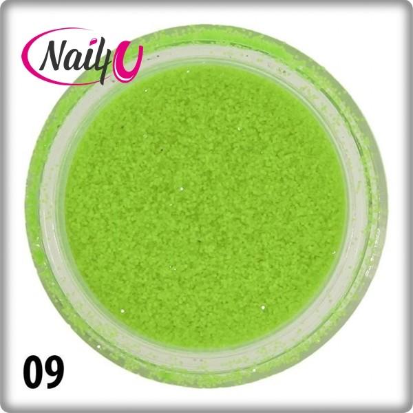 Csillámpor 09. , neon zöld színben. A körömdíszek között a leginkább népszerű körömdíszítő anyag. Töretlen népszerűsége a kedvező ár mellett, a széleskörű felhasználhatóságnak is köszönhető. Használhatjuk szinte bármilyen körmön. Tehetjük felületre, beépíthetjük, vagy akár az építő anyaghoz is keverhetjük. A végeredmény; káprázatos csillogás, egyszerűen és gyorsan.