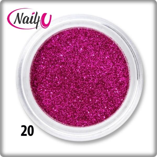 Csillámpor 20. , violet színben. A körömdíszek között a leginkább népszerű körömdíszítő anyag. Töretlen népszerűsége a kedvező ár mellett, a széleskörű felhasználhatóságnak is köszönhető. Használhatjuk szinte bármilyen körmön. Tehetjük felületre, beépíthetjük, vagy akár az építő anyaghoz is keverhetjük. A végeredmény; káprázatos csillogás, egyszerűen és gyorsan.