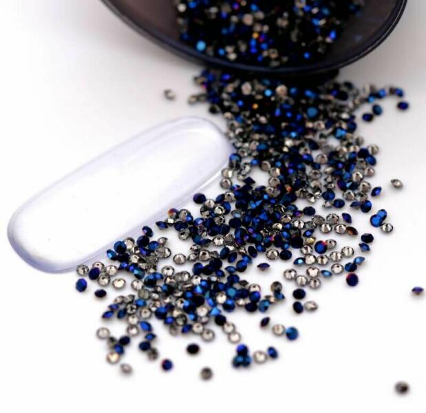 Mini pixie üvegdarabok. Csúcsos, metálkék aljú pixie körömdísz, körömfelületre szórva fényes csillogó hatás érhető el vele. 0.5gr. /cs.